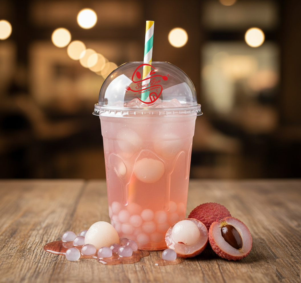 Every Lychee Boba meal is prepared fresh to order. We don’t believe in “shelf-life” for our fruit teas or sides; instead, we use premium syrups and authentic popping pearls to ensure that every “Sauce Boss” experience is as fresh as the first sip. By choosing this refreshing lychee fruit tea, you are getting the ideal balance of natural sweetness and excitingly burstable textures that stay delicious and ice-cold even during the delivery process.