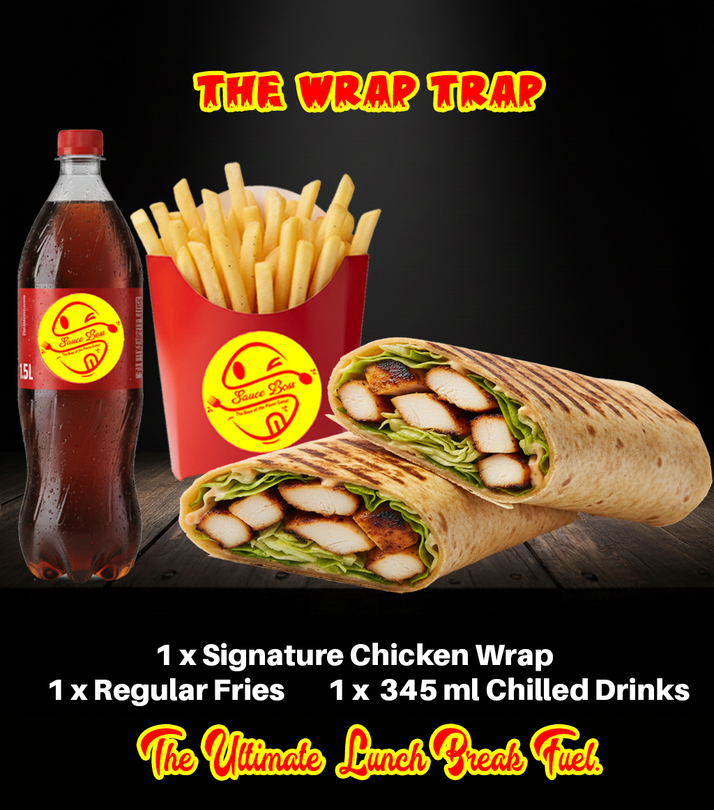 At Sauce Boss, we believe the best wrap starts with the best ingredients. Our tortillas are toasted to perfection, providing a slight crunch that complements the juicy chicken inside. We use only premium-cut, hormone-free chicken and locally sourced vegetables. Whether you are grabbing a quick lunch on the go or settling in for a hearty dinner, this trio offers the ultimate balance of flavor, texture, and refreshment. It’s the complete “Wrap Trap” experience delivered right to your door in heat-insulated packaging.